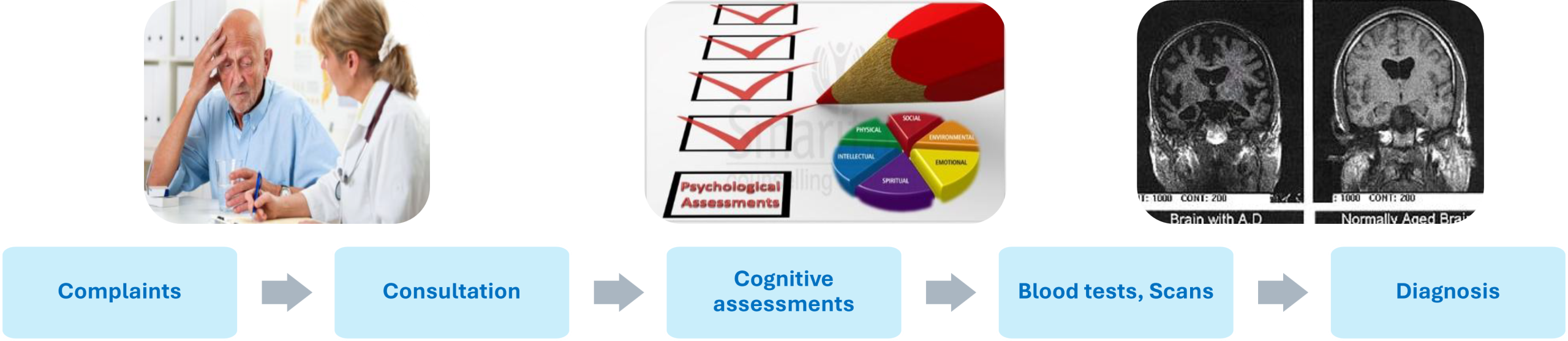 Blood Tests: There is no single blood test to diagnose dementia. A range of tests are performed to rule out underlying medical conditions that can be the reversible causes of dementia. These include: