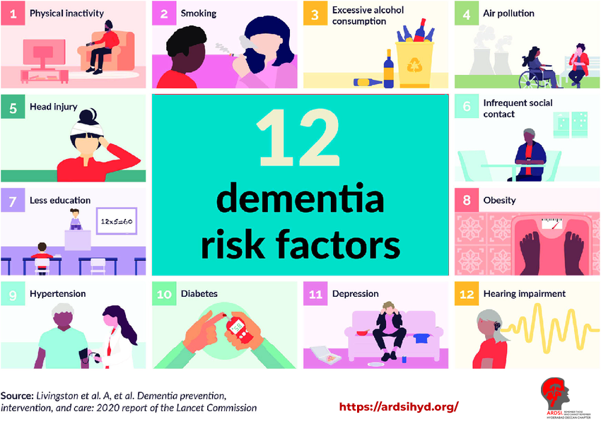 Almost half of dementia cases are linked to risk factors that we can control. These are called modifiable risk factors. This means that there are things we can do to protect the health of our brains and so reduce our risk of getting dementia. Research has found this is particularly important in our mid-life (aged 40-65). Some research studies have found that people with healthier lifestyles are less likely to develop dementia and in cases where they did get dementia, these people experience a slower decline of symptoms.